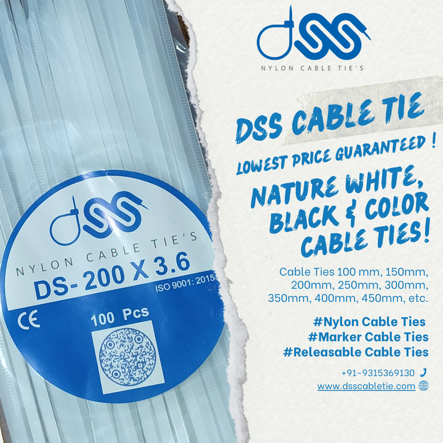 Nylon cable ties are made of nylon 6 or nylon 6-6, which provides durability and resistance to heat, sunlight, moisture, and chemicals. They feature a self-locking head that allows them to be tightened to a certain tension and then locked into place. Nylon is flexible and strong, allowing cable ties to securely bind objects without damaging them.