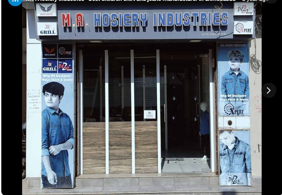 M A Hosiery Industries in Khokhara, Ahmedabad, is a leading manufacturer and wholesaler of premium children’s clothing. Specializing in boys' shirts, kids' shirts, and boys' jeans, we offer high-quality, stylish, and durable apparel for children. As a trusted boys' jeans manufacturer and children's shirt manufacturer by our distributors and retailers, we cater to bulk orders with competitive pricing and timely delivery. Whether you're looking for trendy designs or comfortable fits, M A Hosiery Industries is your one-stop destination for top-notch kids' clothing needs. Partner with us for reliable service and exceptional quality.