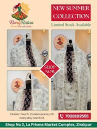 Rangrataa is a refined place for individuals seeking stylish and fashionable ethnic wear. Recognized as a trusted women's ethnic store in Zirakpur, we offers a carefully curated selection of garments that reflect tradition with a modern twist. Each design shows attention to detail, high-quality fabrics, and flattering designs suitable for a variety of events. The collection has beautiful suits, festive lehengas, and flexible outfits that can be worn from daytime to nighttime events. Each piece is designed with comfort and style in mind, making sure ladies feel confident and well-dressed. Our store experience is welcoming and attentive, making it simple to browse and select clothing that suit personal tastes. It stands out for its dedicated service and great sense of style, making it a dependable option for individuals who value timeless ethnic outfits with a modern appeal and long-lasting impression.